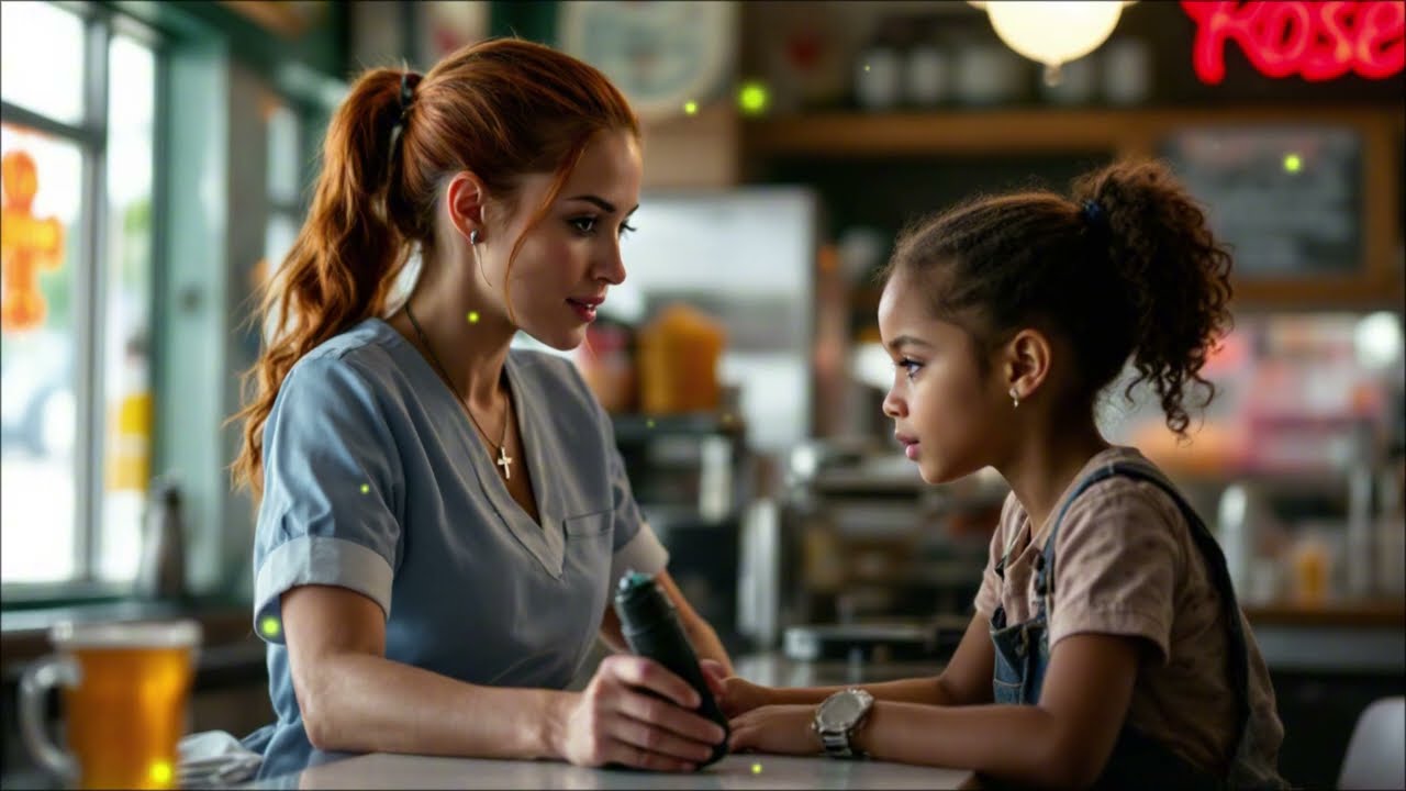 But the engine kept running. Footsteps crunched across the gravel outside. Slow. Measured. Getting closer. A gentle knock echoed through the silence. Three soft wraps against the glass door. Then a man’s voice. Calm and patient. Ava. Daddy’s here to take you home. Cole’s eyes swept the diner with mechanical precision.