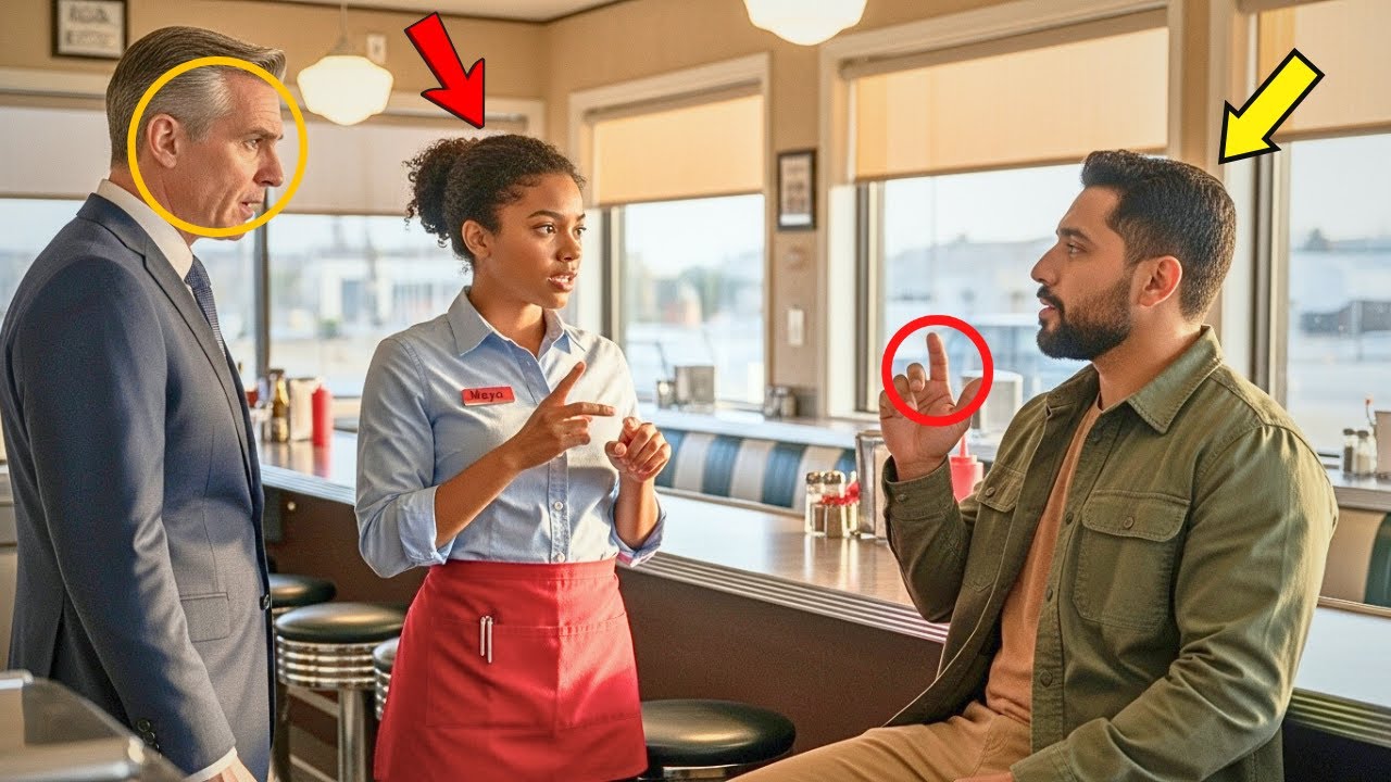 The billionaire CEO, freshly arrived from the conference, stepped into the diner with the air of someone used to being the center of every room. His eyes landed on her, then on the deaf visitor, and something shifted in his expression. The diner grew busier. Orders piled up. Conversations rose.