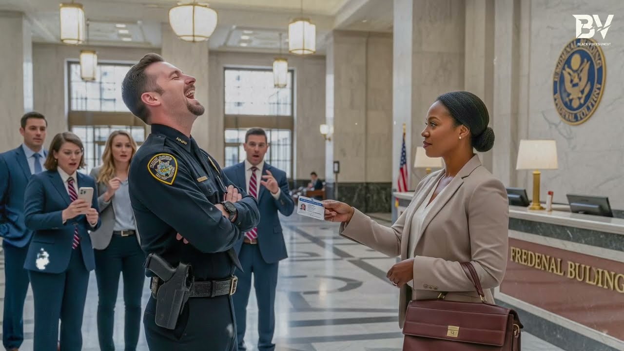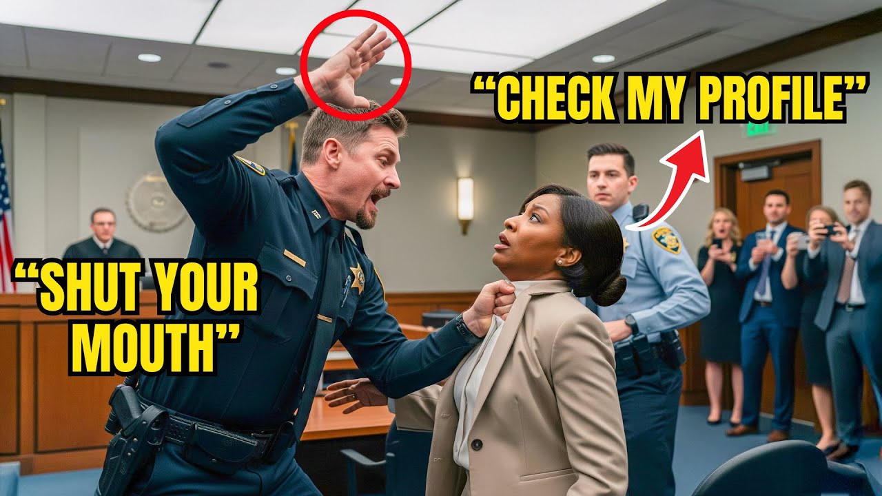 I’m here for a court proceeding, officer. Sure you are. Cain’s voice turned nasty. People like you don’t belong in real courtrooms. Sarah remained calm. People like me. Don’t play dumb. Cain stepped closer, his contempt obvious. This isn’t some ghetto drama show. Before Sarah could respond, Cain’s hand cracked across her face. Her visitors pass scattered to the floor.