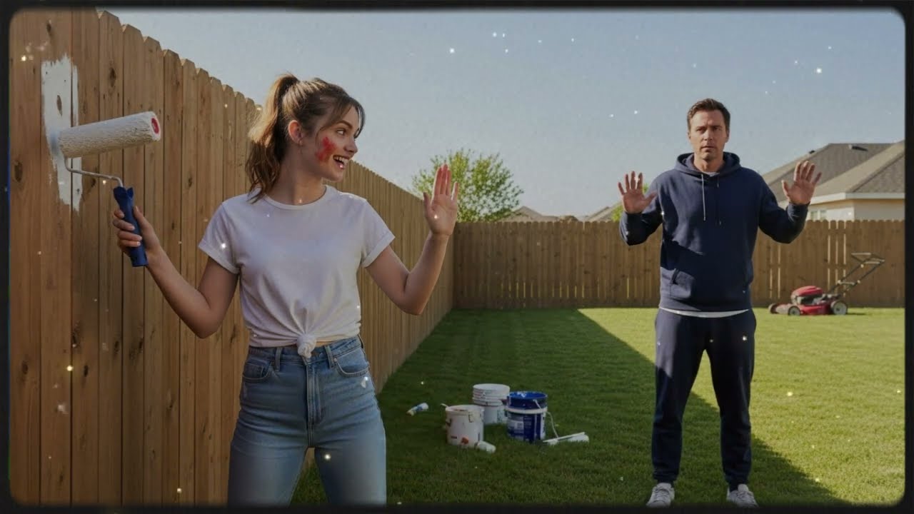 I walked out onto the porch to breathe, rubbing the paint off my hands, when I saw Emily painting her fence, the same fence she’d been working on since the day I first noticed her. She was focused, hair tied up, cheeks smudged with paint. I didn’t realize I was staring until she glanced over. That’s when she said it with a grin that was more playful than anything else.